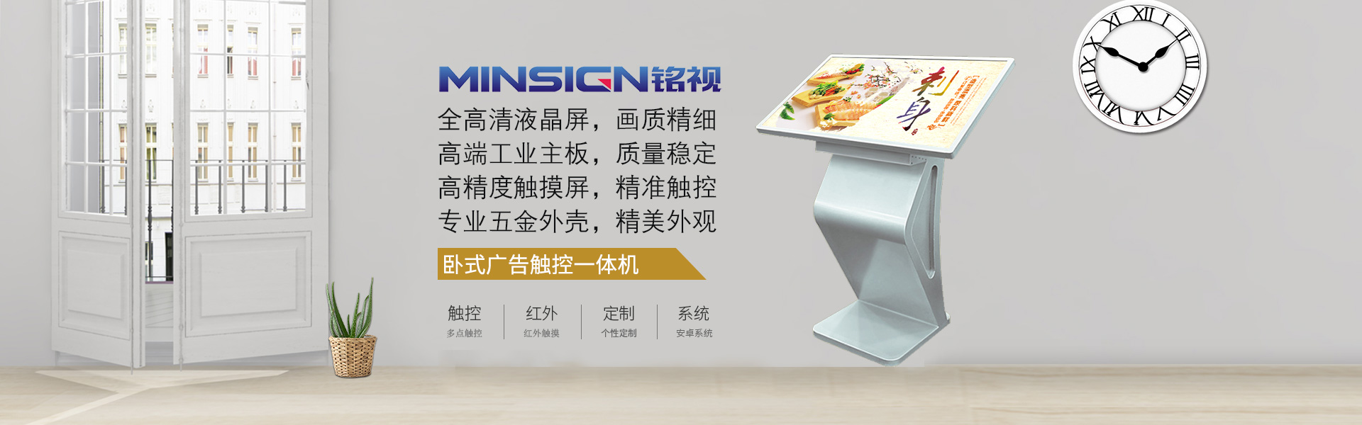 【廣州銘視】專(zhuān)注商用顯示設(shè)備研發(fā)生產(chǎn)銷(xiāo)售服務(wù),各式臥式紅外觸控一體機(jī)